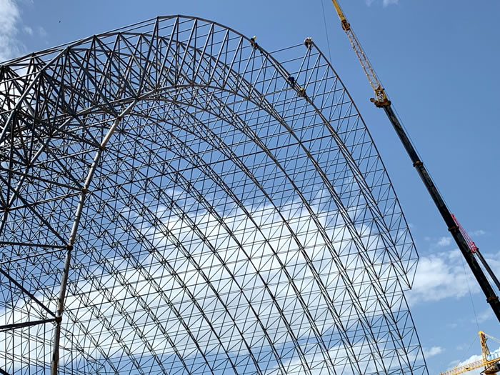 (2)网架加工前应对现场尺寸进行复测,确认无误后方可进行加工、安装;网架制作、运输、安装应遵守《空间网格结构技术规程》JGJ7-2010、《钢网架义乌螺栓球节点》JG/T 10-2009、《钢网架义乌螺栓球节点用高强度螺栓》 GB/T 16939-2016、《义乌钢结构义乌工程义乌施工规范》 GB50755-2012、《义乌钢结构义乌工程施工质量验收标准》 GB50205-2020。